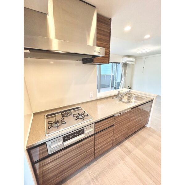 キッチンはシステムキッチンとなっており、使いやすいだけでなくお掃除もしやすいのが特徴です。