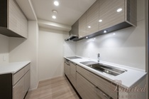 キッチンはシステムキッチンとなっており、使いやすいだけでなくお掃除もしやすいのが特徴です。