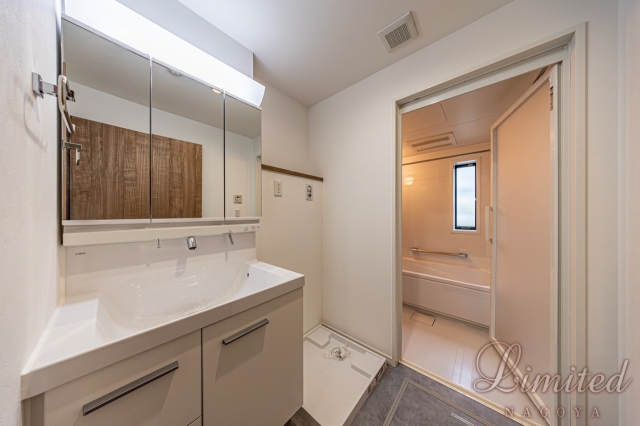 浴室には換気乾燥機が設備されており、梅雨時でも洗濯物を乾かすことができたりカビ対策に役立ちます。