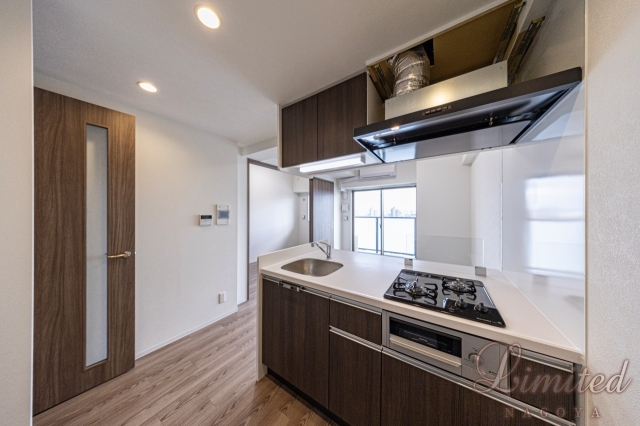 キッチンはシステムキッチンとなっており、使いやすいだけでなくお掃除もしやすいのが特徴です。