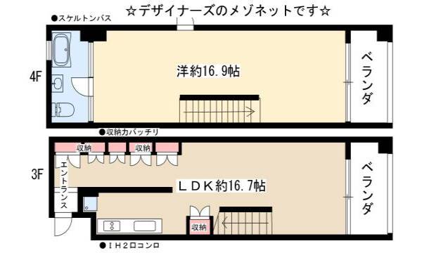 | 設備 | モニター付インターホン / ディンブルキー / 火災報知器 / 陽当り良好 / フローリング / メゾネット / 全居室フローリング / ベランダ・バルコニー / 収納スペース / クローゼット(1ヶ所) / 玄関収納 / 物置 / 下駄箱 / 収納たっぷり / バス・トイレ同室 / シャワー / 給湯 / 3点給湯 / 洗面台 / 洗面所独立 / 洗濯機置き場(室内) / 浴室に窓 / 独立洗面台 / コンロ設置済(2口) / コンロ種類(IH) / システムキッチン / エアコン(1台) / 24H換気システム / CATV(有料) / CATVインターネット | ||